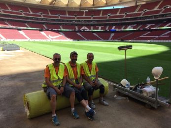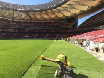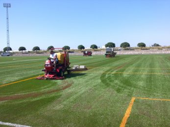 En modelos de FUTBOL, en la variedad de MONOFILAMENTO CON NERVIO CENTRAL, en distintas dimensiones y puntadas desde 22mm hasta 40, 50 y 60mm de altura de pelo, todo ello completado con arena de sílice de alta calidad así como el complemento de CAUCHO ó nuestra alternativa de FIBRA DE COCO, que aplicamos en el CAMPO DE FUTBOL DE LA UNIVERSIDAD DE ALMERIA, con grandísimos resultados